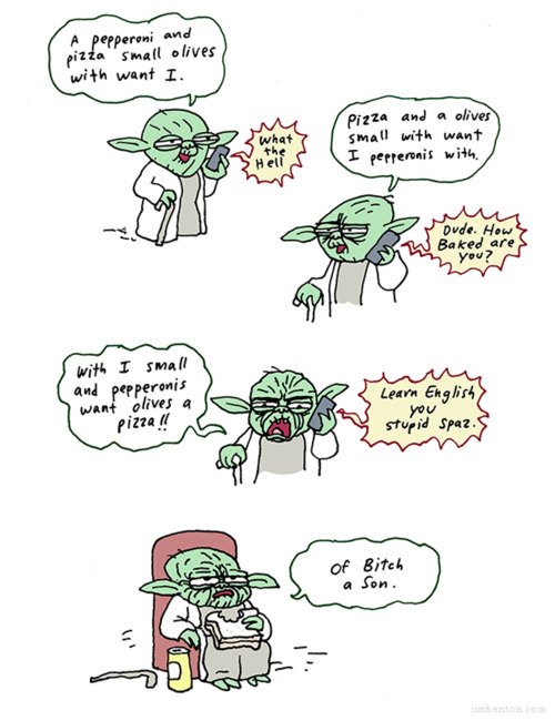 Šitą bene sugalvojo kokie tai amerikonai, katrie su lietuviais bendravo: http://4.bp.blogspot.com/-BYZx5knb1Ig/TiGVGG1XoeI/AAAAAAAANes/POyXfLk-VUM/s1600/yodapizza.jpg 🙂